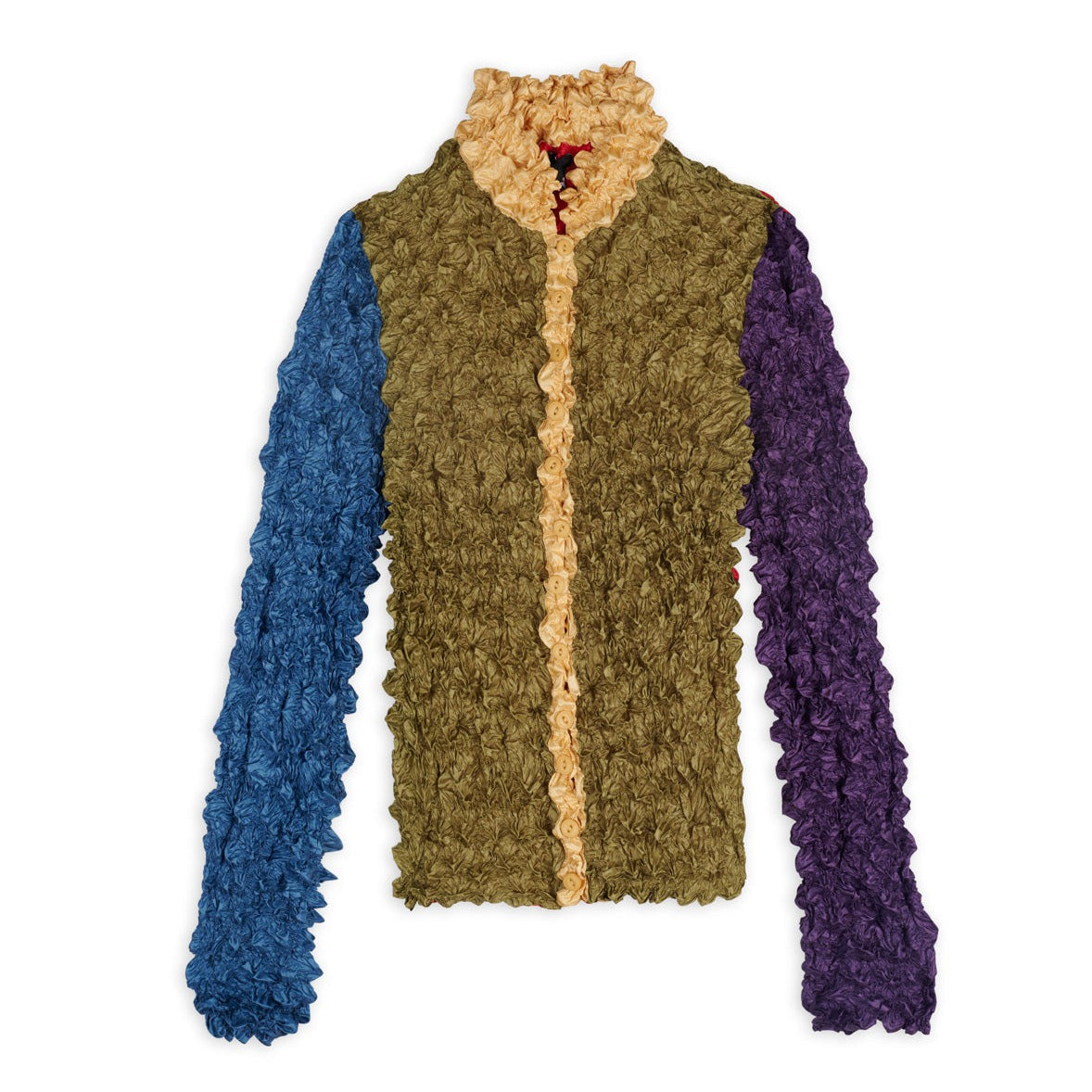 Brain Dead Blocked Bubble Shrink Button Up Top