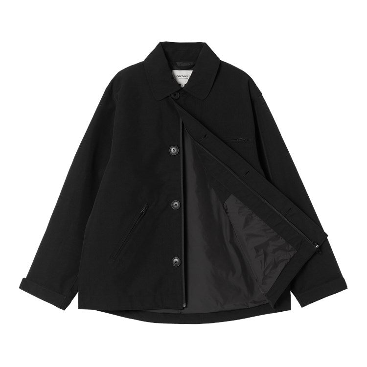 The Women's Barnett Jacket is made from lined, midweight nylon canvas with water-repellent qualities. The jacket has a slightly A-line silhouette which can be adjusted at the bottom band and cuffs. Three zipped welt pockets appear on the front. A woven Square Label completes the design.