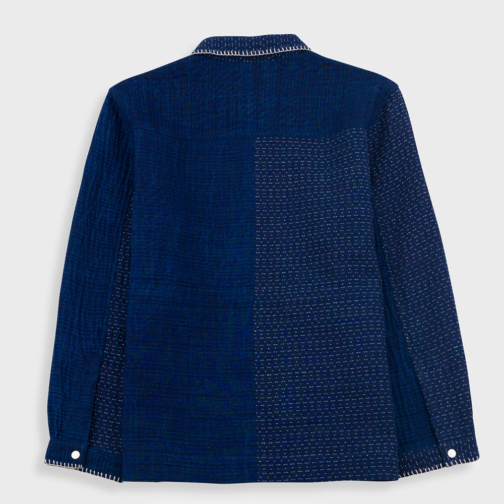 For this garment we have used a textured cotton that has been dyed in real indigo and has a float stitching detail across its surface.
