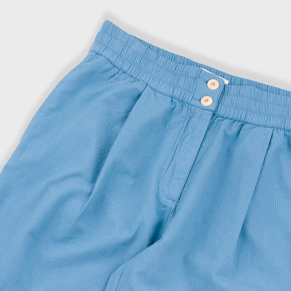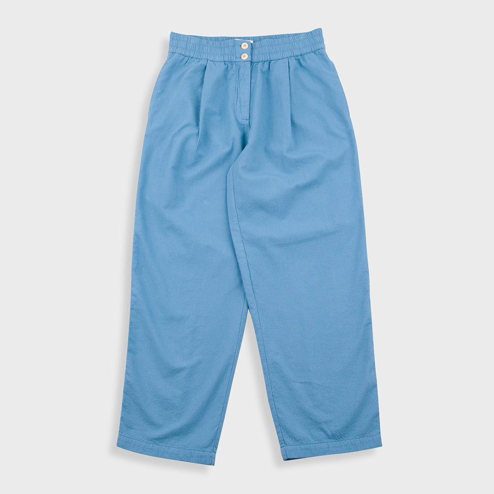 We've used a lightweight cotton fabric with a topstitch stripe for added texture and then garment dyed it for depth of colour.