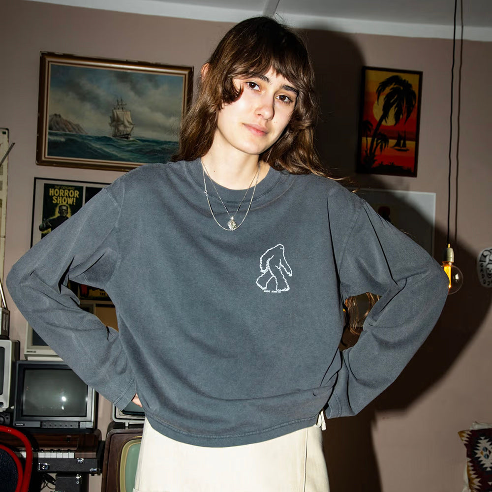 Long-sleeved t-shirt made with organic cotton. The open-end spun yarn gives an open knit with an irregular character, a dry hand, and a little hairiness. The faded shade and vintage look result from the garment dye and, on top of that, a fade-out wash. The straight cut has a relaxed, comfortable fit with a dropped shoulder seam and a roomy sleeve with a wide cuff. The legendary Yeti, also known as the abominable snowman, is illustrated on both the front and back of this t-shirt.