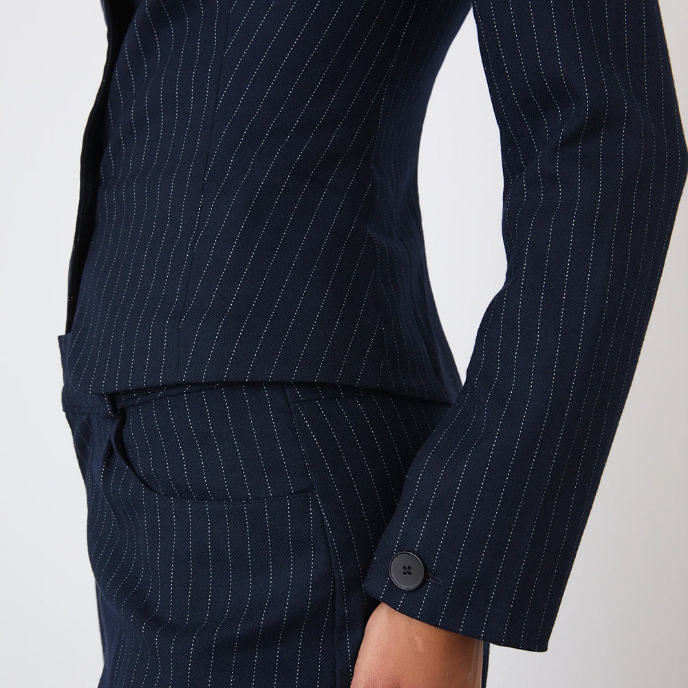 Crafted in our signature tailoring colourway, Ink, navy with subtle white pinstripes.