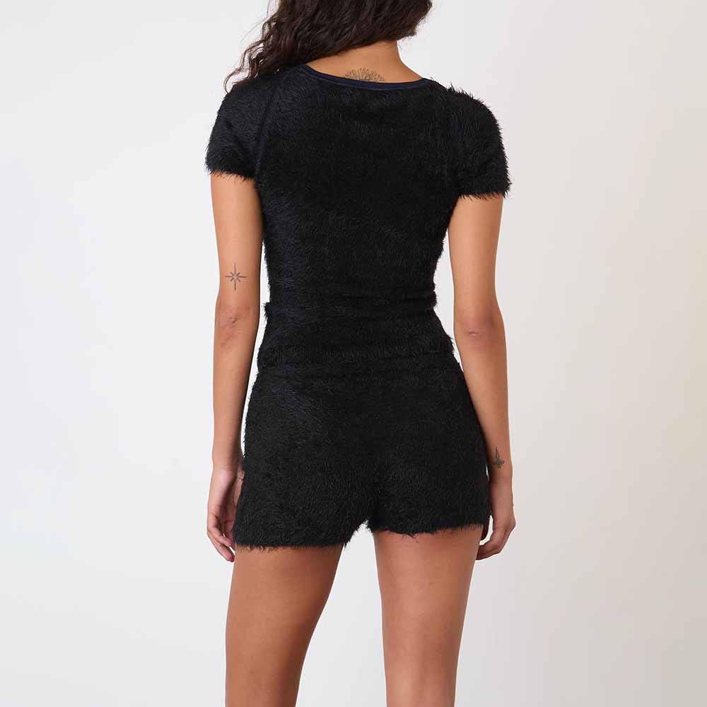 Classic cap sleeve t-shirt in super soft fluffy knit.