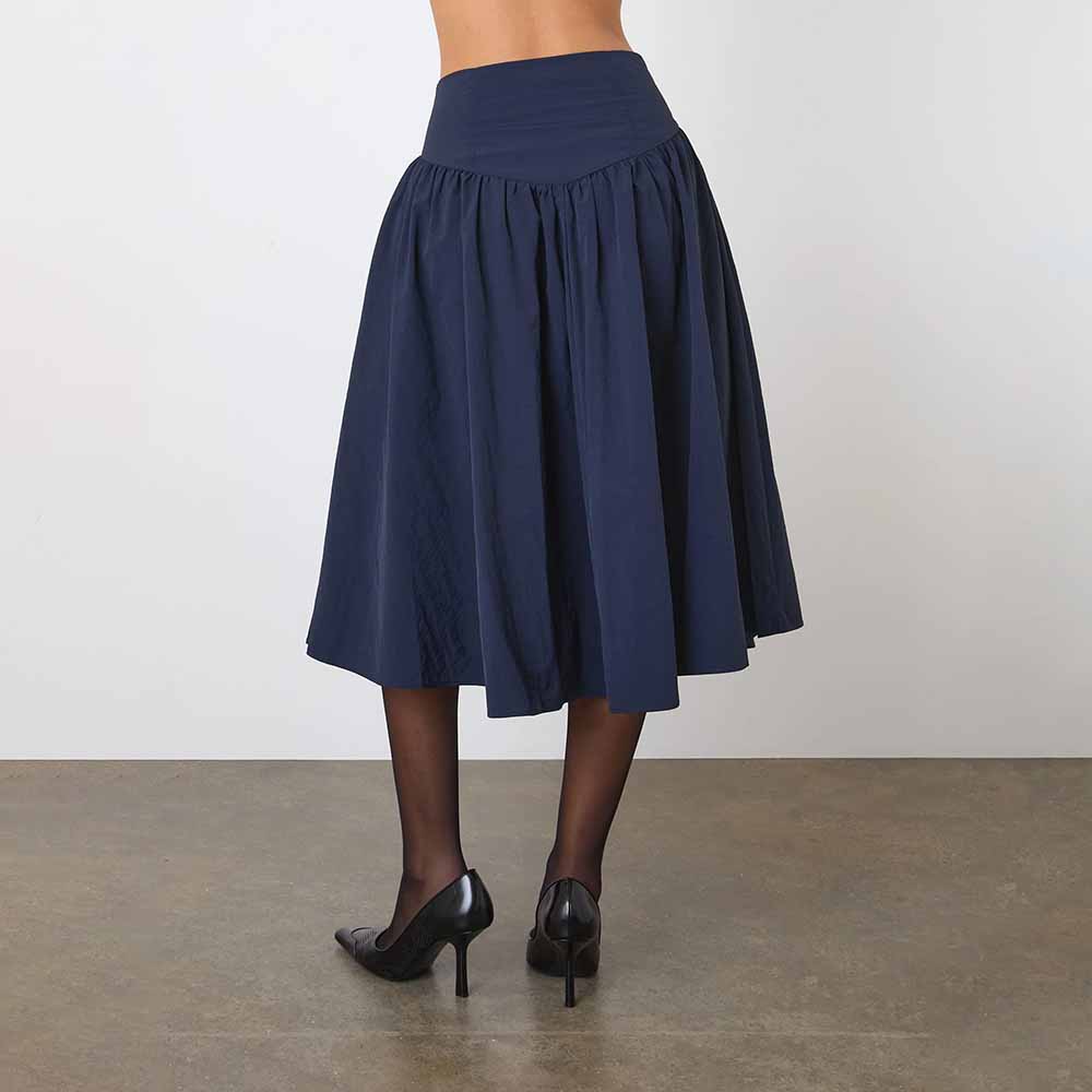 The Deba Midi Skirt is a modern twist on the classic half-circle skirt, featuring a mid-rise, deep V-shaped waistband, an invisible front zip and newly featured pockets. Made from signature nylon, it has a gathered, A-line silhouette that gives a flowy, flattering fit. For a matching set, pair it with The Deba Top in Midnight.