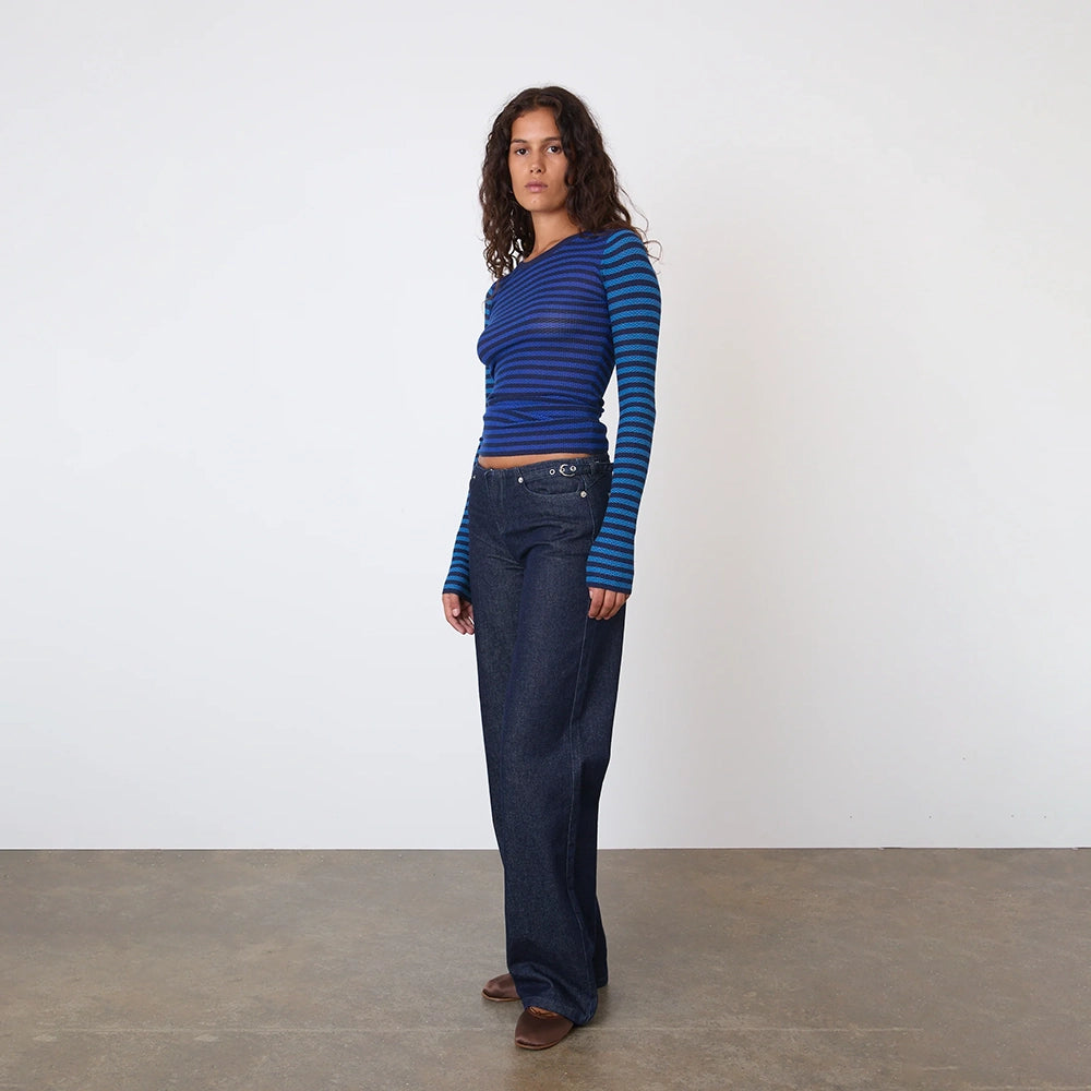 An elevated core essential featuring a honeycomb-textured multi-yarn stitch with contrasting horizontal stripes.