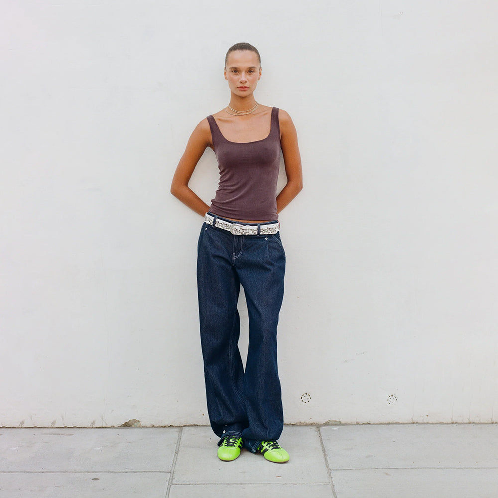 A double-layered tank in cupro, a seasonless wardrobe staple.